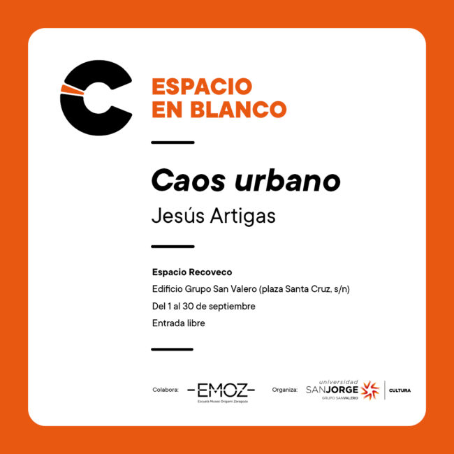 Durante el mes de septiembre, el espacio expositivo Recoveco comienza su programación 22/23 en colaboración con la Escuela Museo de Origami Zaragoza (EMOZ). Caos urbano es una pieza de papiroflexia realizada por el actual campeón de las Olimpiadas Internacionales de Origami, el artista zaragozano Jesús Artigas. La pieza representa un diorama donde cada detalle se…