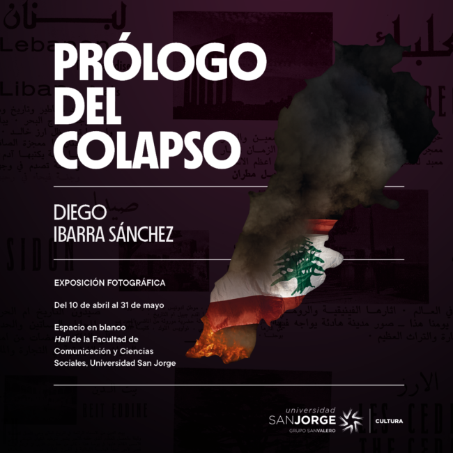 Exposición fotográfica «Prólogo del colapso» Diego Ibarra Espacio en blanco, hall de la Facultad de Comunicación y Ciencias Sociales USJ Del 10 de abril al 31 de mayo de 2023 A partir del 10 de abril, Espacio en blanco, hall de la Facultad de Comunicación y Ciencias Sociales USJ recorre el Líbano de los últimos siete años…