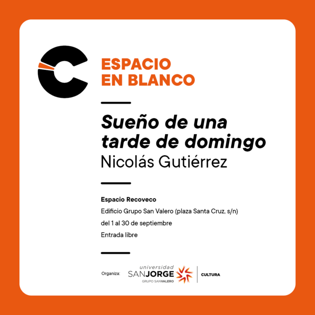 Durante el mes de septiembre, el espacio Recoveco del Edificio Grupo San Valero exhibe una de las obras seleccionadas en su convocatoria abierta a alumnos y personal del Grupo San Valero para formar parte de su programa expositivo. La obra, seleccionada dentro de la categoría personal docente, se titula Sueño de una tarde de domingo (2015),…