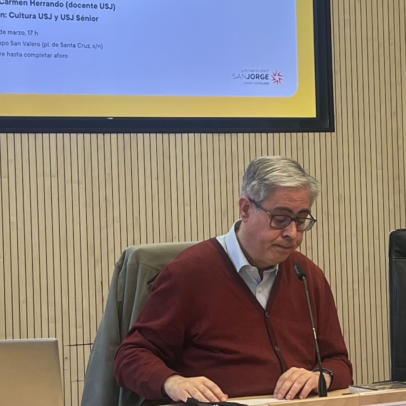La conferencia está organizada por Cultura USJ en colaboración con USJ Sénior, gracias a la profesora de ética Carmen Herrando y con motivo de la exposición «Manchas de luz. Ser mujer en el Holocausto» de la Asociación Yad Vashem España, situada en el hall del Edificio de Rectorado en el campus de la Universidad San Jorge.