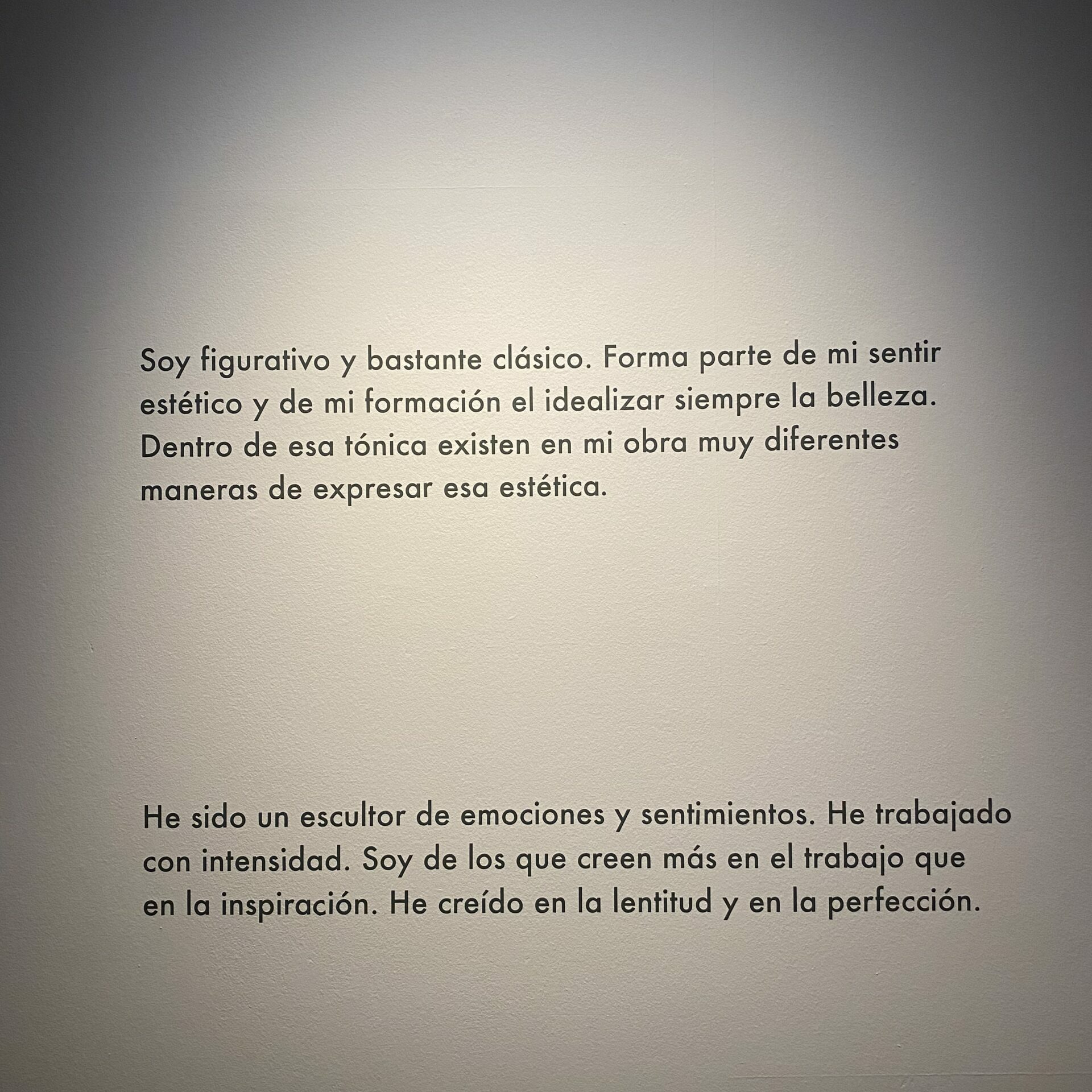 He sido un escultor de emociones y sentimientos. He trabajado con intensidad. Soy de los que creen más en el trabajo que en la inspiración. He creído en la lentitud y en la perfección.