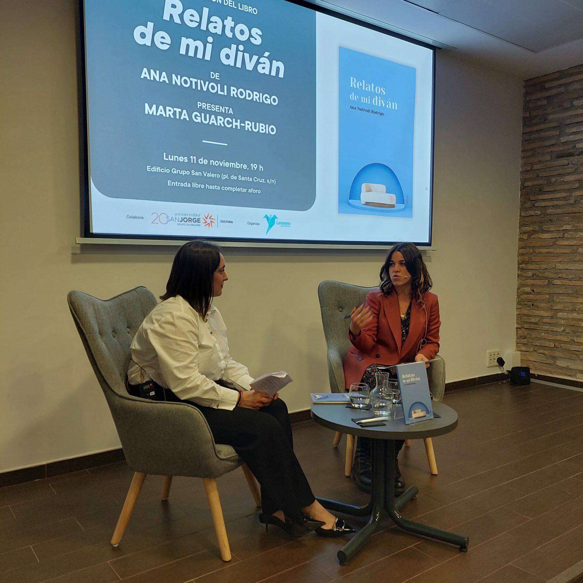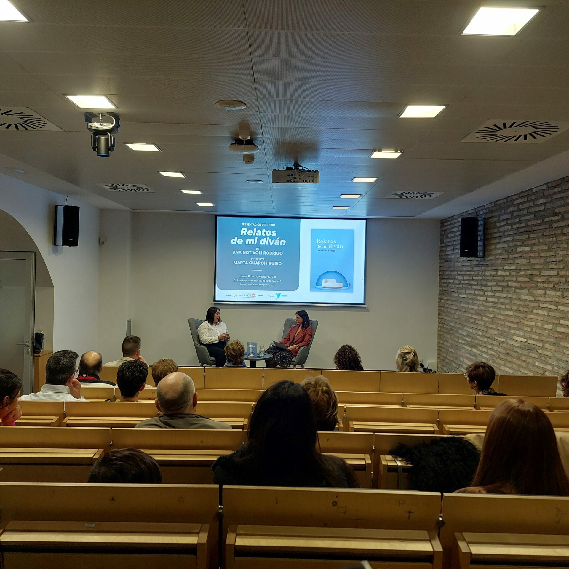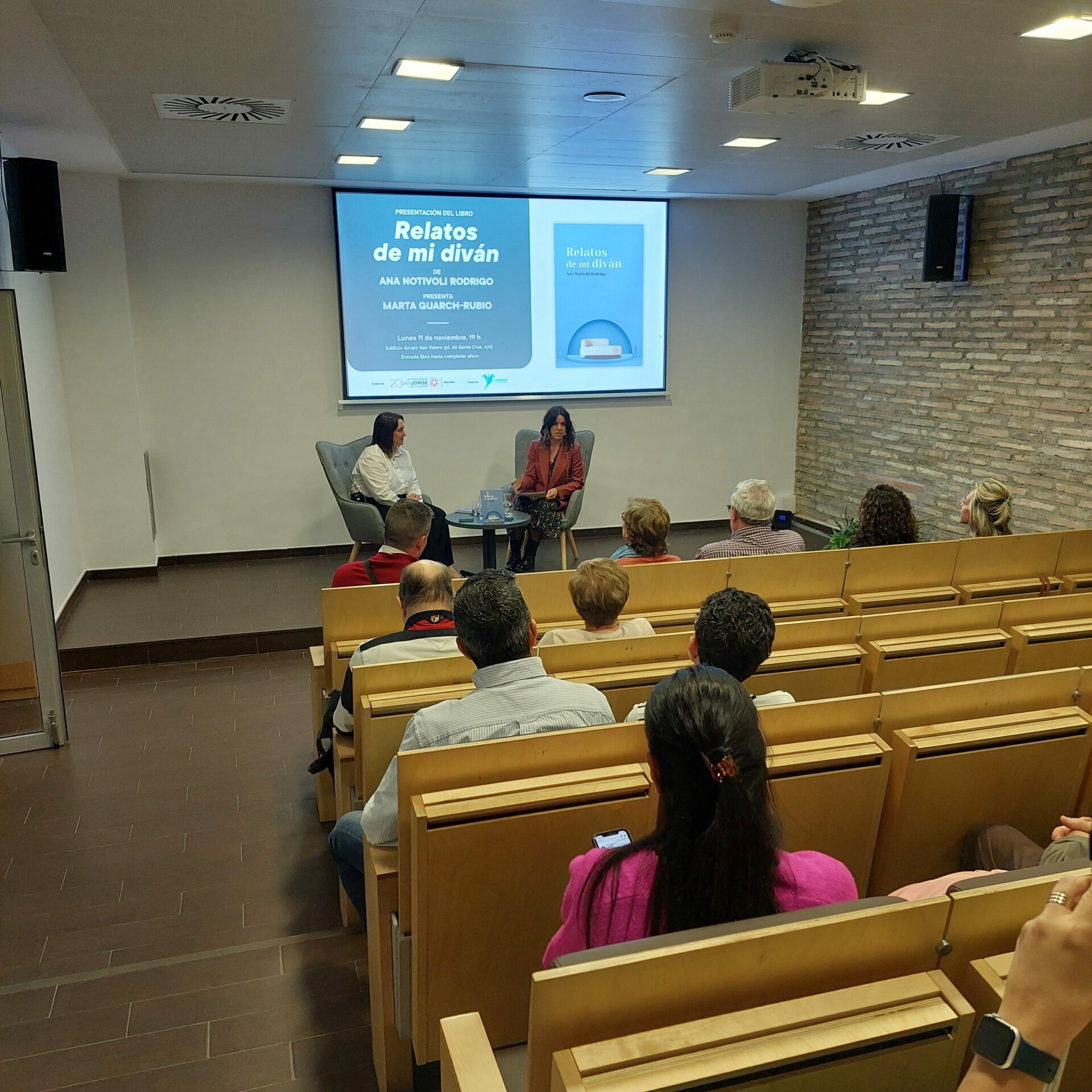 El lunes 11 de noviembre, Letrame Grupo Editorial, en colaboración con Cultura USJ, presenta en la Sala Ebro del Edificio Grupo San Valero Relatos de mi diván, de Ana Notivoli Rodrigo, una publicación sobre salud mental desde el acompañamiento terapéutico. La autora conversará con Marta Guarch-Rubio, vicedecana del Grado en Psicología de la Universidad San Jorge.