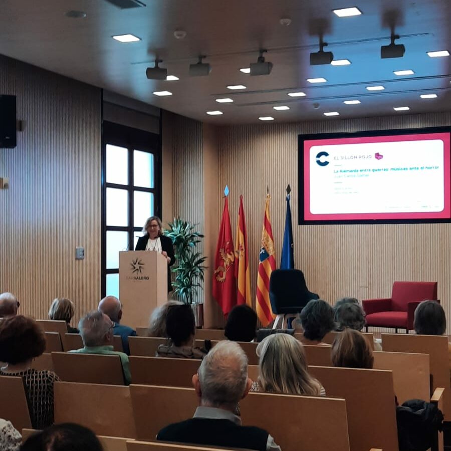 El sillón rojo tendrá lugar a las 12 h en el Edificio Grupo San Valero. Gracias a la colaboración con la Sociedad Filarmónica, al final de esta sesión cada asistente recibirá una invitación para asistir a unos de los conciertos de la Filarmónica de Zaragoza.