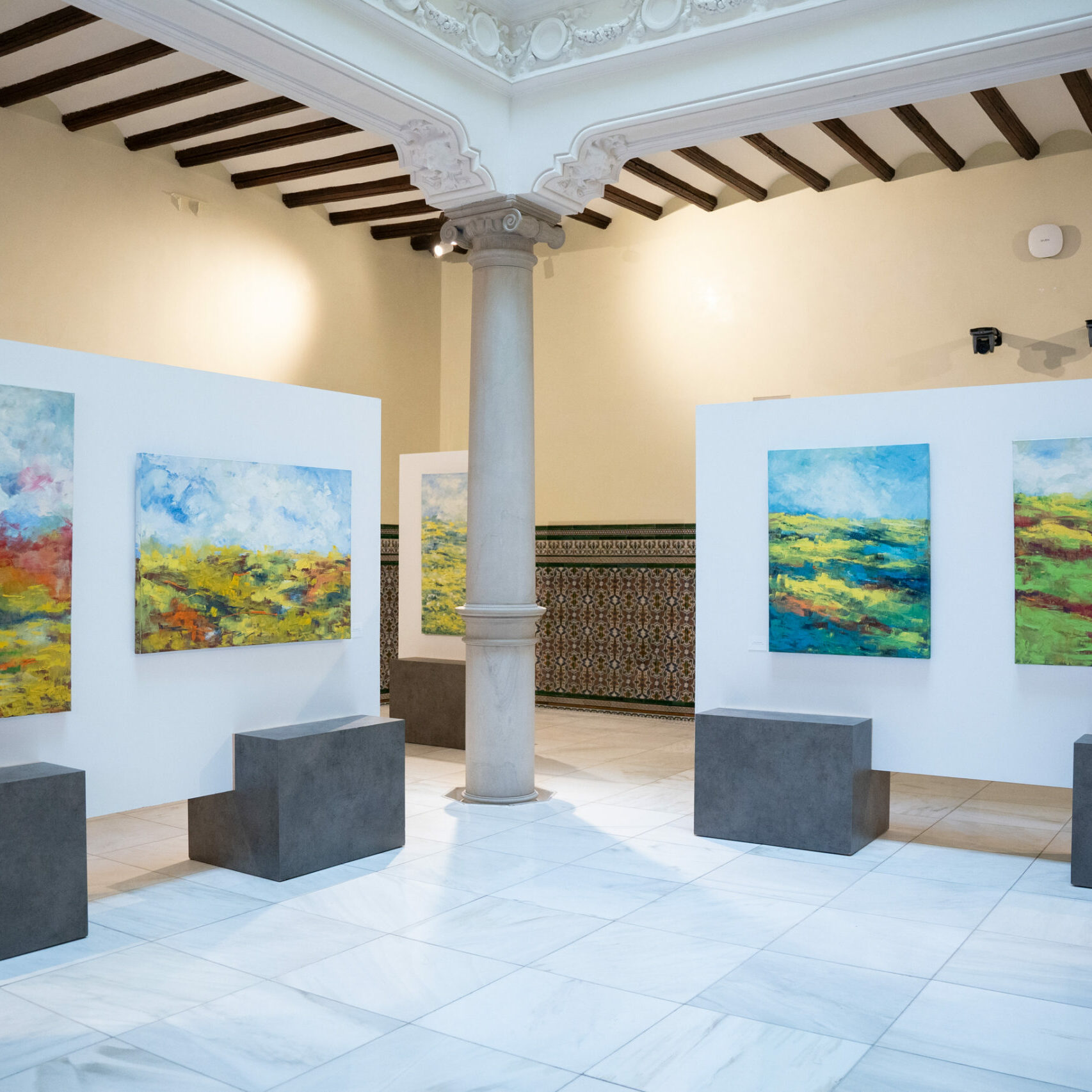A partir del 22 de septiembre, el patio del Edificio Grupo San Valero acoge la exposición «Tierras de Aragón», una selección de diez óleos de la pintora y escritora zaragozana Pilar Aguarón Ezpeleta.