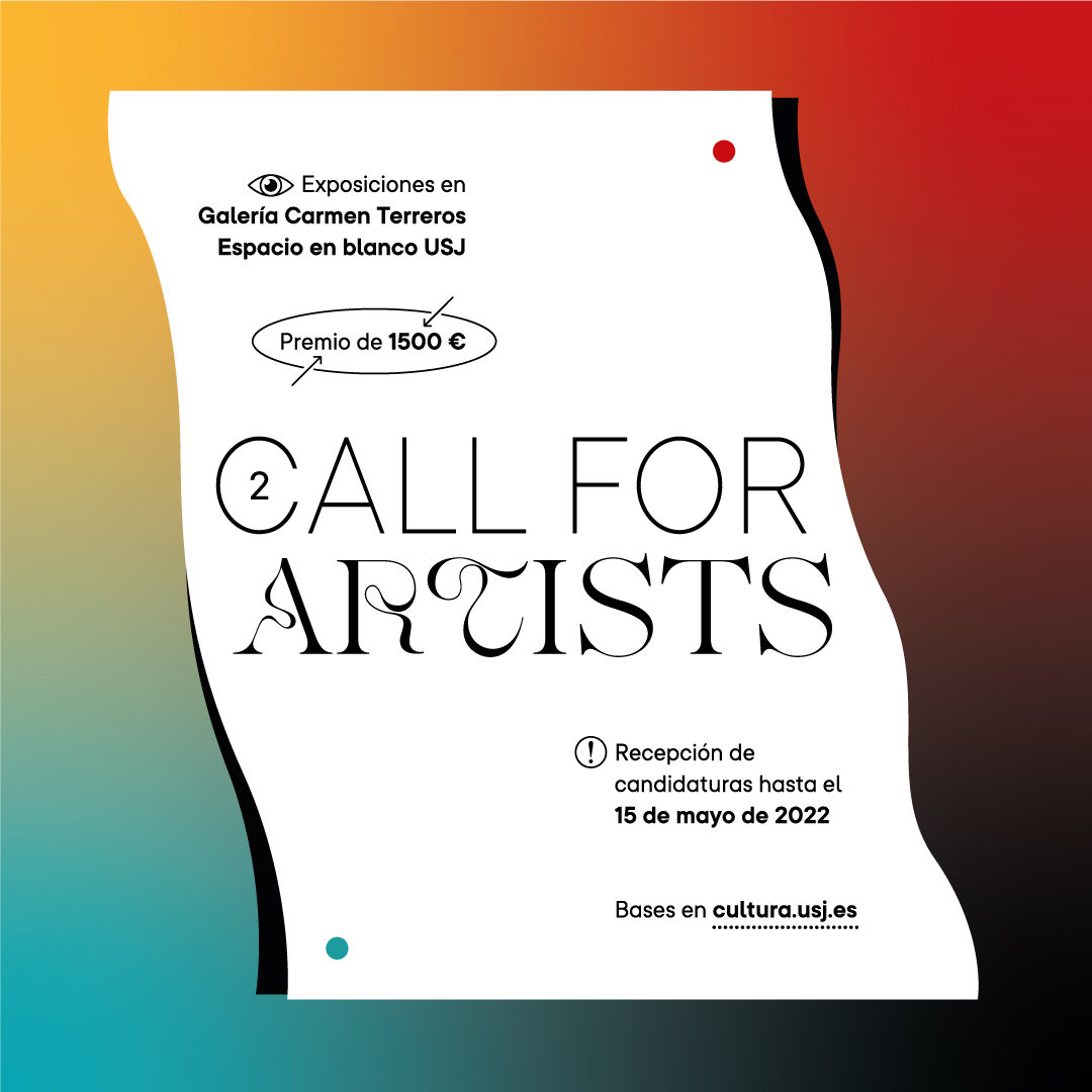 Con el doble objetivo de fomentar la cultura artística aragonesa y promocionar el talento emergente, Cultura USJ, en colaboración con la Galería Carmen Terreros, presenta la segunda edición del Call for artists, una convocatoria abierta a artistas y/o colectivos nacidos o afincados en Aragón que deseen dar a conocer su trabajo artístico.