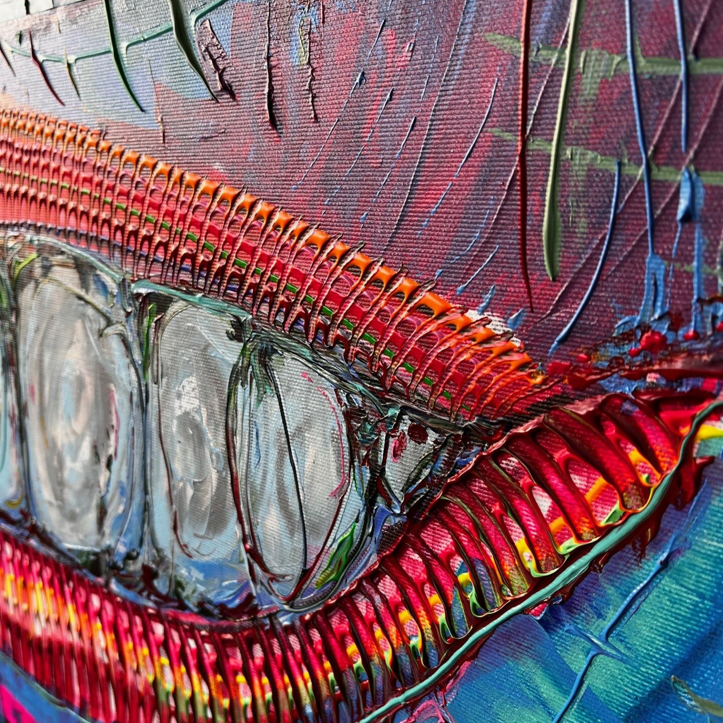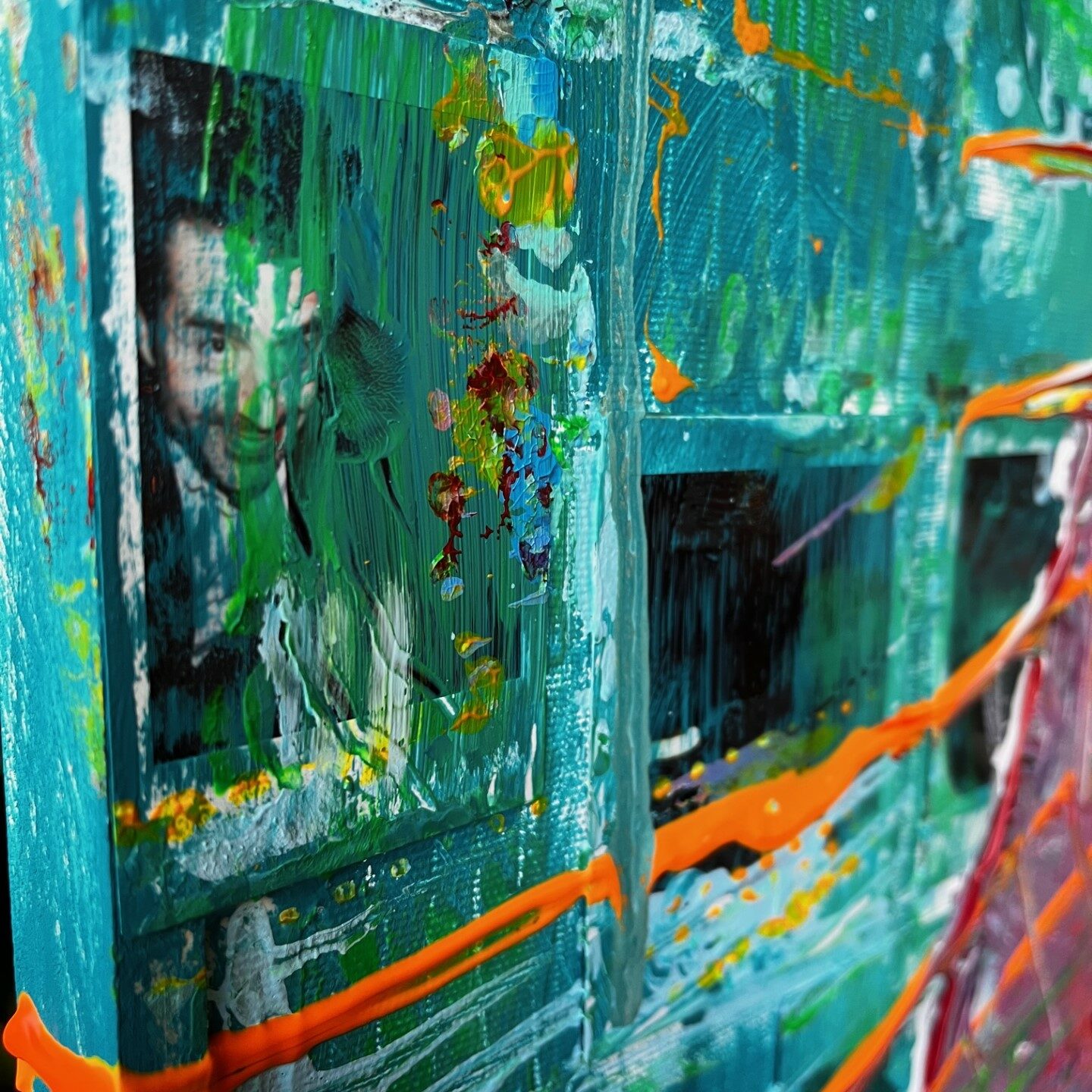 La obra refleja cómo en la sociedad actual prima la imagen sobre el contenido, lo llamativo sobre lo reflexivo, y el impacto sobre la serenidad. El abundante uso del color refleja la necesidad de atención del espectador. Al fondo del cuadro, y tapadas por la pintura, diapositivas y fotografías antiguas simbolizan la futilidad actual de la fotografía, convertida en mera herramienta del narcisismo. Los límites del cuadro, incluido el marco, se ven sobrepasados por la explosión colorida y la necesidad expansiva de llegar a cuantas más personas mejor, sin importar la calidad de su criterio. Una sonrisa desbordante como único mensaje, abrumar con el marketing para esconder la falta de contenido.