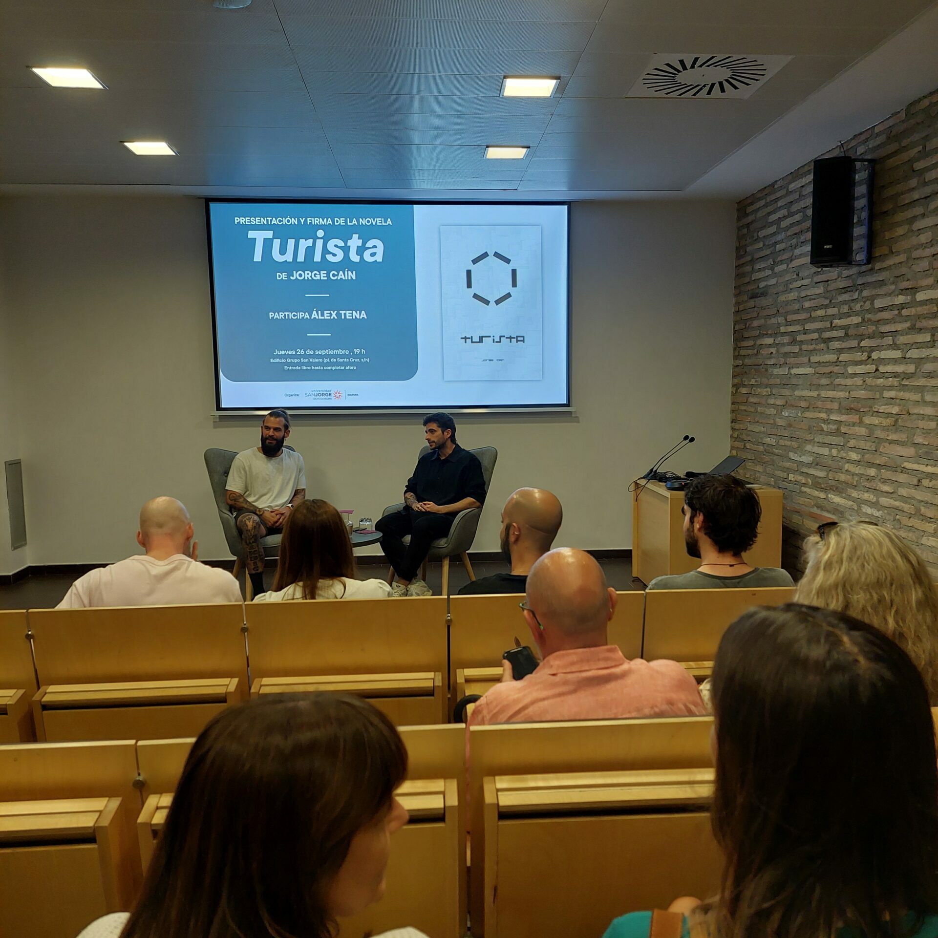 El jueves 26 de septiembre, Jorge Caín, en colaboración con Cultura USJ, presenta en la Sala Ebro del Edificio Grupo San Valero su novela Turista. El autor estará acompañado por Álex Tena. Tras la presentación, habrá una sesión de firma de ejemplares.